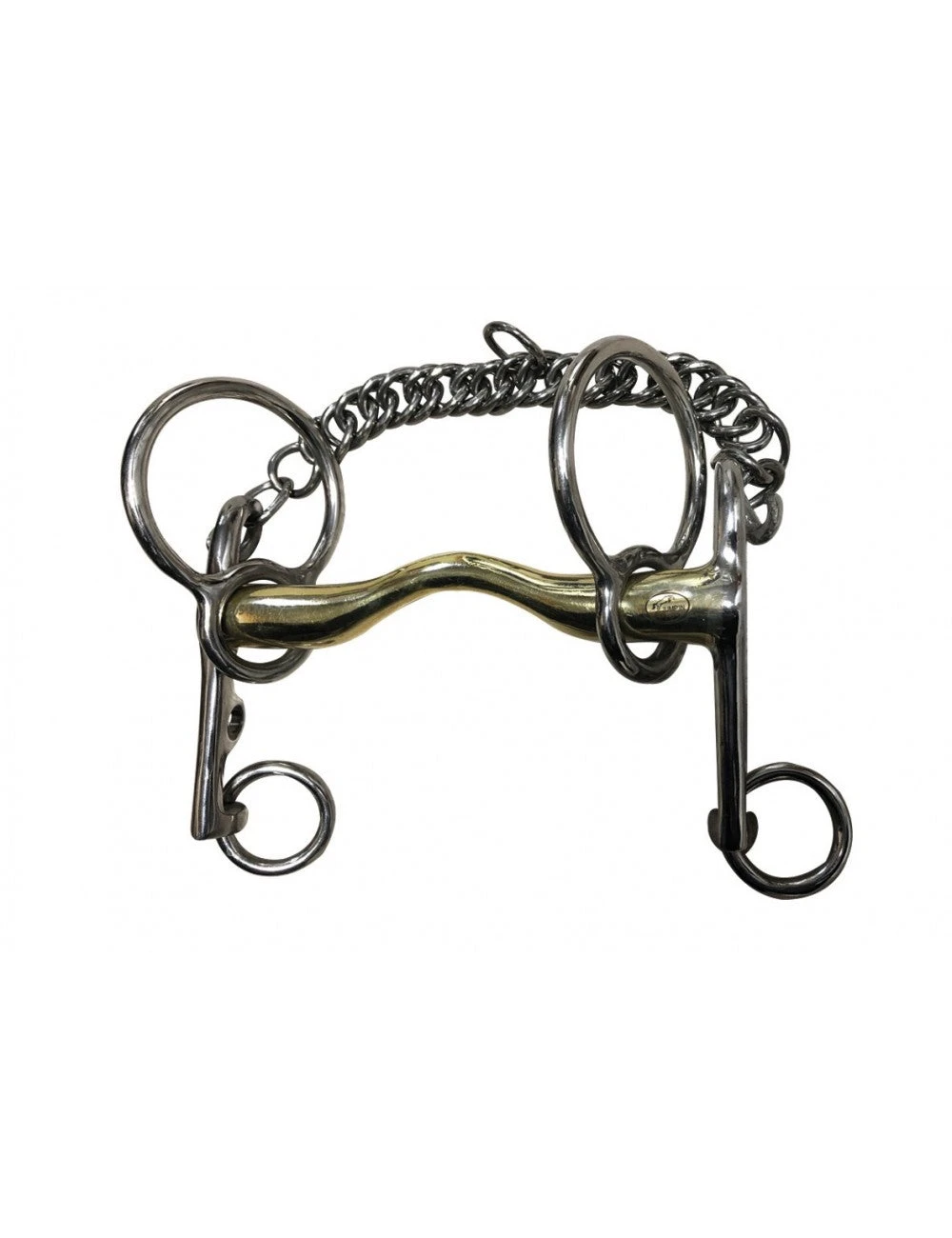 Effect: the Swales bit has some similarities with the Pelham bit but the horse doesn’t feel any pressure on the neck because there is no action on the bridle cheek pieces. It is the only bit with a lever action that doesn’t put any pressure on the horse’s neck. It is used with a single pair of reins and a curb chain and it is less restricting than a Pelham bit as it does not have any action on the head/neck angle.