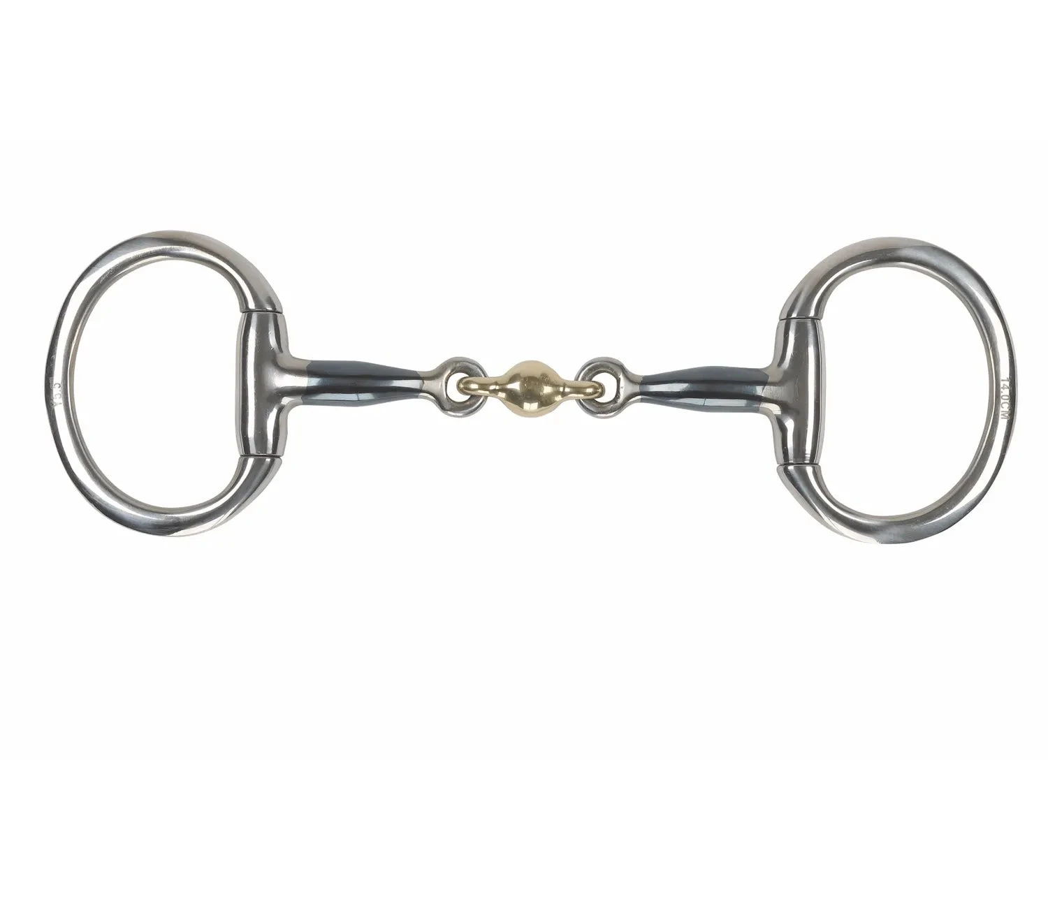 The fixed rings prevent pinching, whilst the brass alloy double joint distributes pressure over both the tongue and bars of the mouth to encourage mouthing and contact.