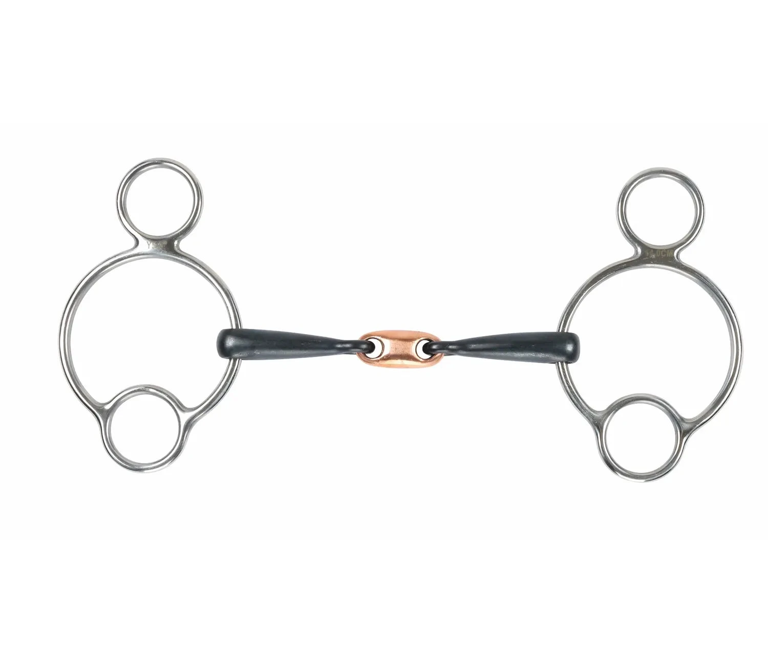 Combines poll pressure and leverage for a mild gag action. The sweet iron and copper link aid salivation and acceptance.